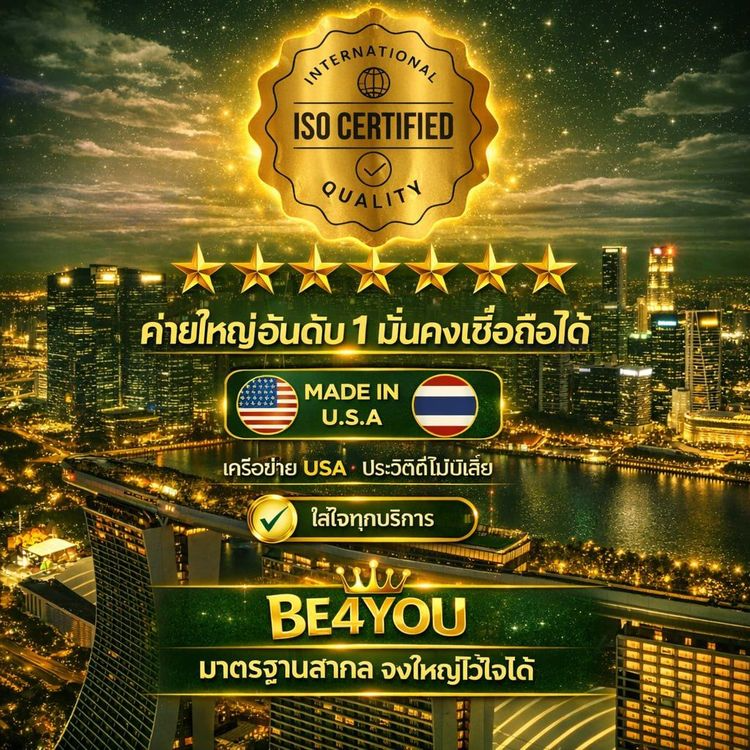 BE4YOU พร้อมมอบประสบการณ์การเดิมพันที่สนุก ปลอดภัย และคุ้มค่า ด้วยบริการที่เป็นมิตรและเป็นธรรม เพื่อให้ผู้เล่นทุกท่านได้รับความพึงพอใจสูงสุด